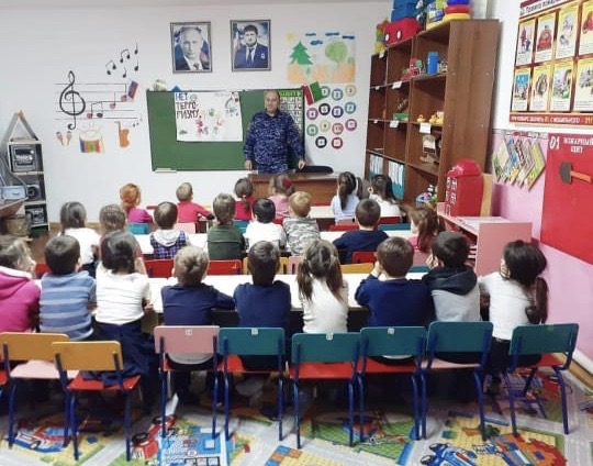Сотрудником Росгвардии РФ по ЧР Капитаном полиции Басхановым С.С. была проведена беседа с детьми старшей группы на тему: "Нет терроризму!"