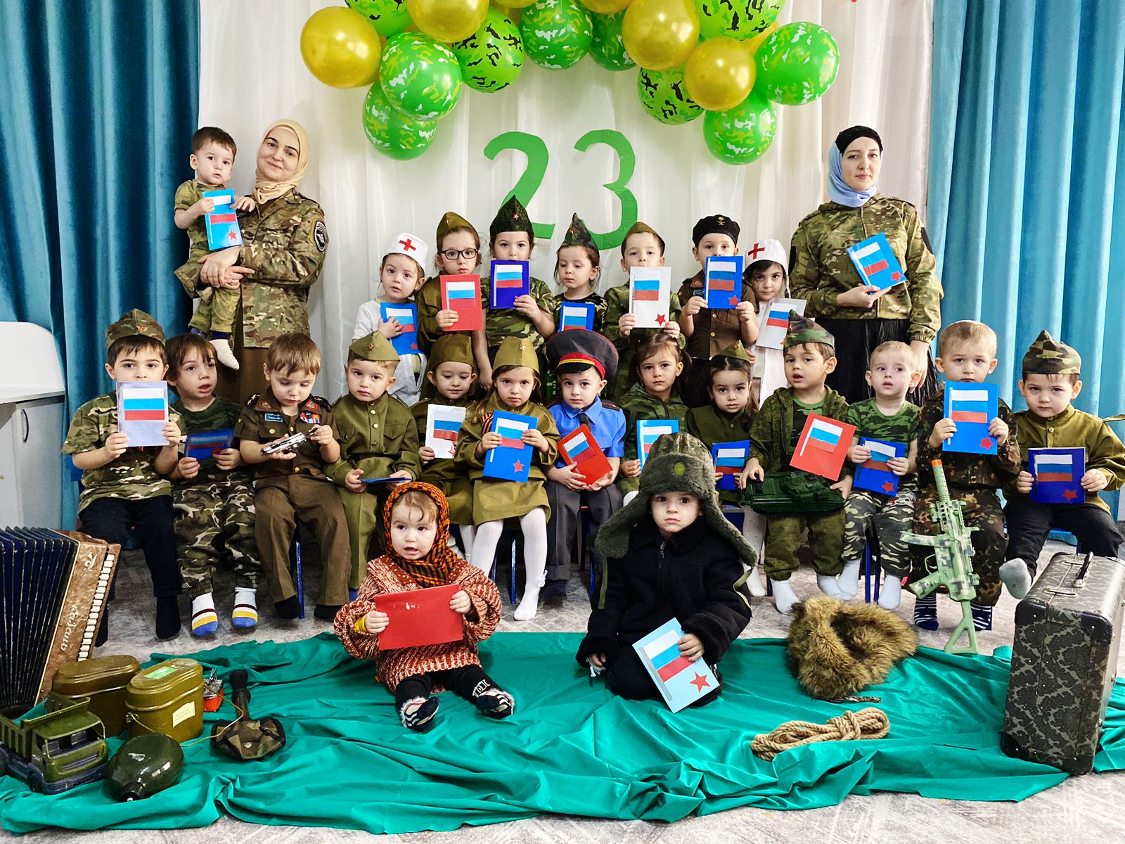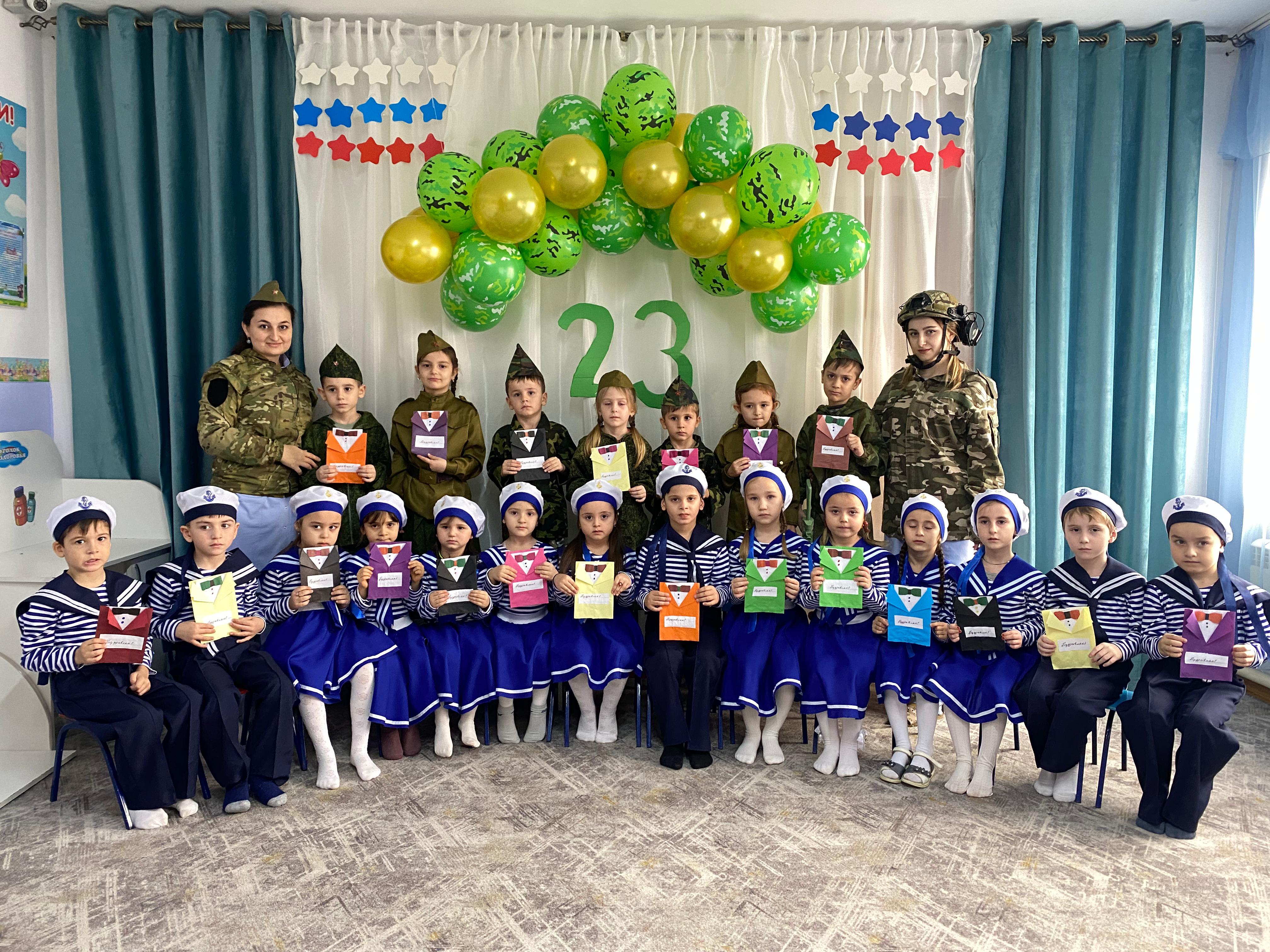 23 февраля – это праздник не только военных, но и всех мужественных и отважных людей, мальчишек детсадовского возраста, которые достойны сердечных поздравлений в мужественный февральский день. А пока мы знакомим детей и рассказываем, что такое армия, воспитываем уважительное отношение к военному человеку, человеку в форме, прививаем любовь к Родине, и развиваем патриотические чувства. Такие мероприятия, проведённые с детьми, закладывают в их душах зёрнышки патриотизма, чувства долга перед Родиной.