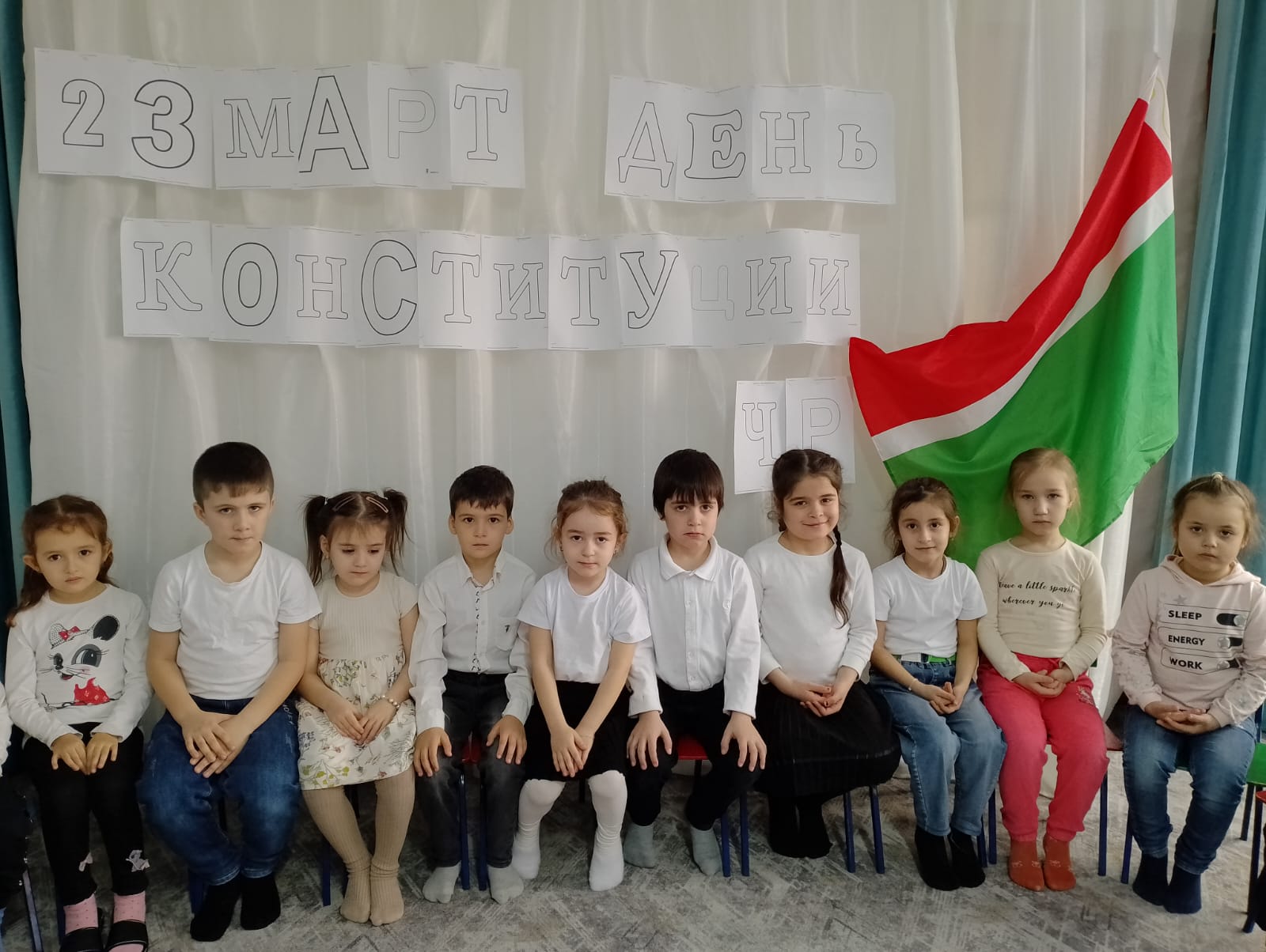 В группах с целью формирования у детей представления о Конституции ЧР, символике Чеченской Республики, чувства патриотизма, гражданского сознания и гордости за свою страну воспитатели провели тематическую беседу «День Конституции ЧР».