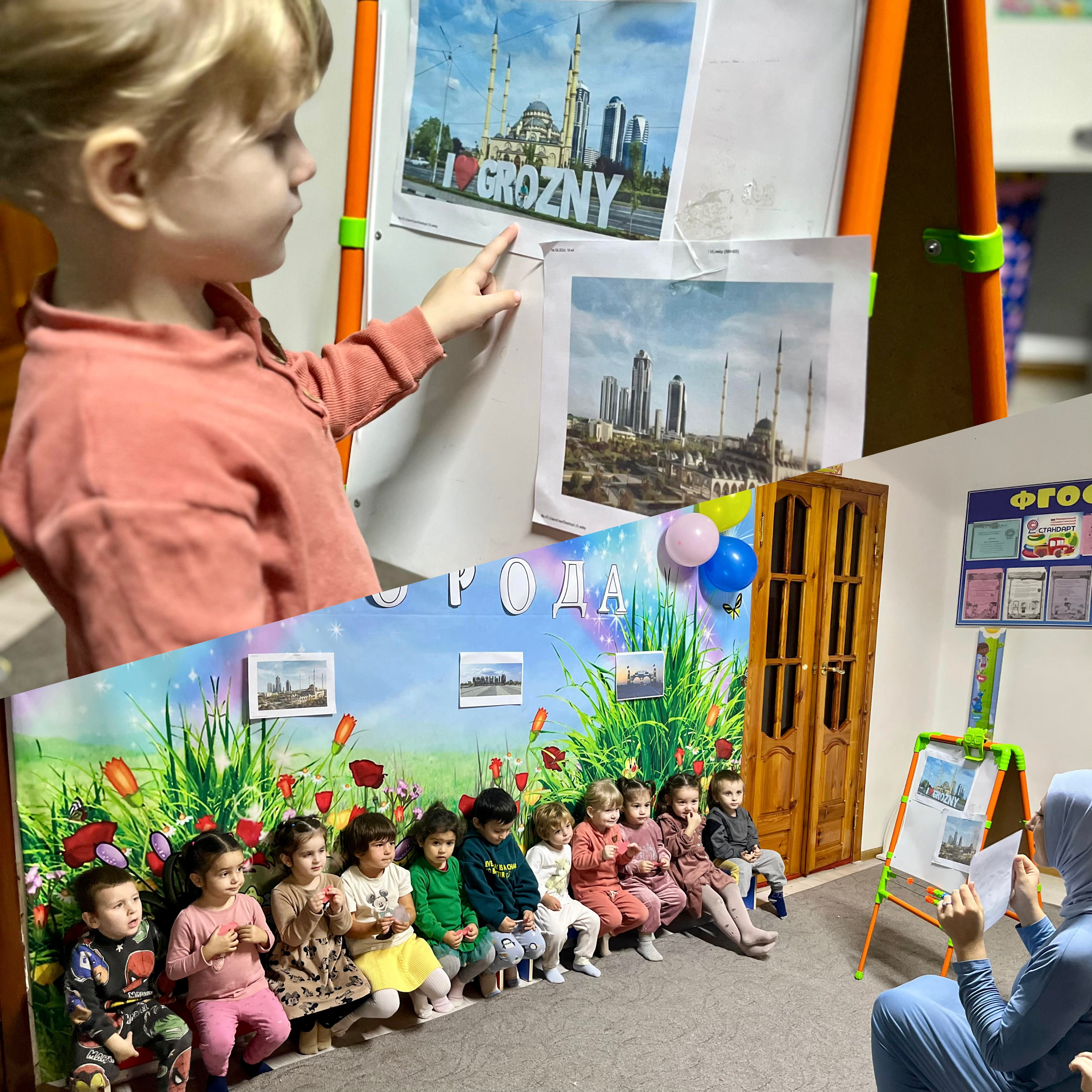 Сегодня столица Чеченской Республики - это современный город с налаженной инфраструктурой, красивейшими улицами и проспектами, «зелеными» зонами, фонтанами, самой большой и красивой мечетью в Европе, театрами и концертными залами, школами и высшими учебными заведениями, спортивными аренами.В рамках реализации ЕК по духовно – нравственному воспитанию и развитию подрастающего поколения и с целью наглядного показа и ознакомления воспитанников с позитивными изменениями, происходящими в облике и жизни нашей столицы, 04.10.2024 года, в нашем дошкольном учреждении в честь Дня города Грозный прошли мероприятия: в старшей группе воспитателями оформлены красочные стенгазеты «Старый и новый Грозный»; во всех возрастных группах прошли беседы о городе Грозный, его истории, достопримечательностях. Детишки с большим интересом совершили виртуальную экскурсию по «старому» и «новому» Грозному.