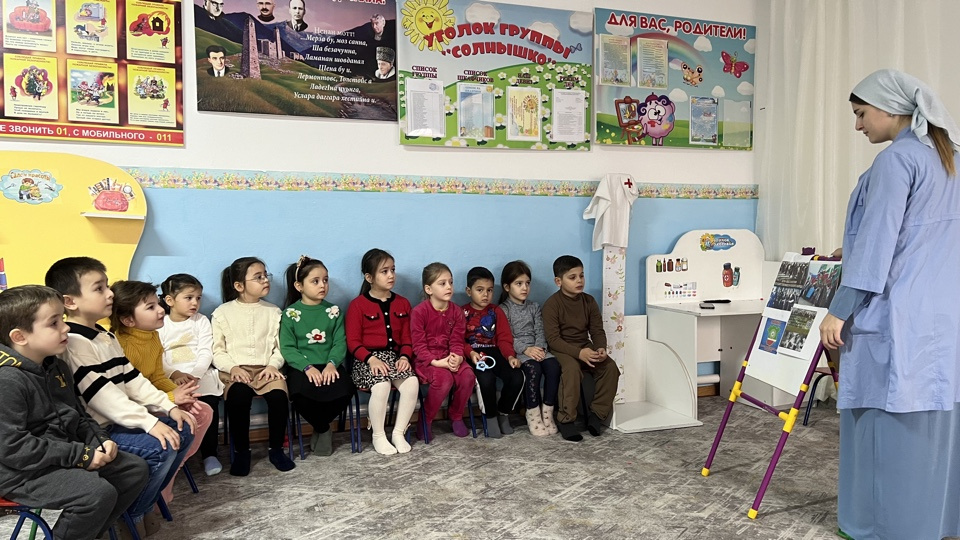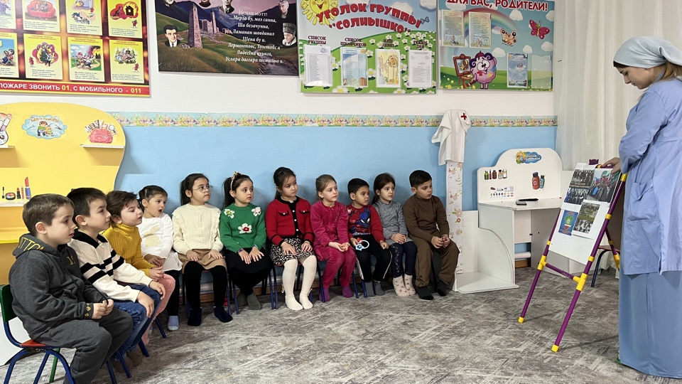 -Дударова С.А. воспитатель старшей группы «Солнышко» провела беседу «Важные страницы нашей истории», посвященный Дню восстановления Государственности ЧР. Цель мероприятия – воспитание у подрастающего поколения чувства патриотизма, формирования познавательного интереса к историческому прошлому своего народа и Чеченской Республики, расширить кругозор воспитанников, привить любовь к Родине.